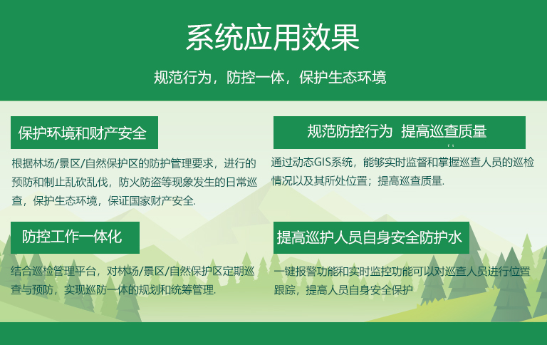 通過《林業/景區/自然保護區GPS巡檢管理系統》,規范巡檢行為,強化巡查質量,實現林業/景區/自然保護區防控工