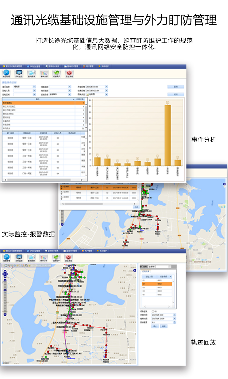 打造長途光纜基礎(chǔ)信息大數(shù)據(jù),巡查盯防維護(hù)工作的規(guī)范化,通訊網(wǎng)絡(luò)安全防控一體化。