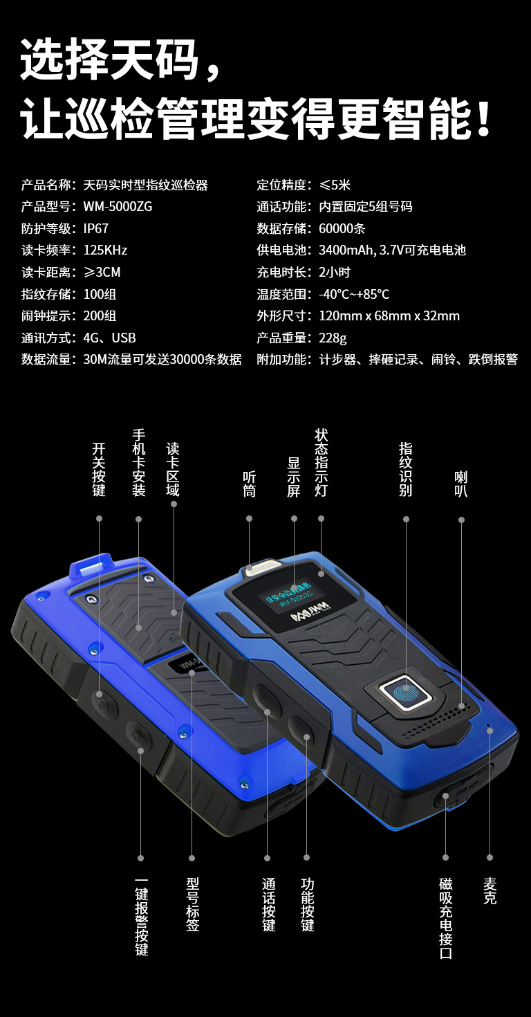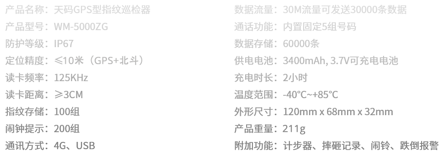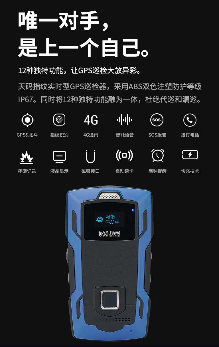天碼指紋實時型GPS巡檢器,采用ABS雙色注塑防護等級IP67。同時將12種獨特功能融為一體,杜絕代巡和漏巡。